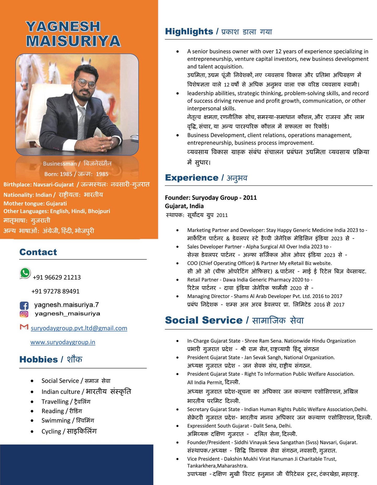 · Founder/President - Siddhi Vinayak Seva Sangathan (Svss) Navsari, Gujarat.