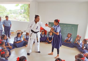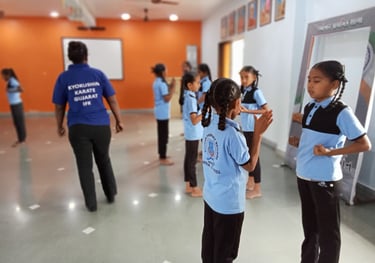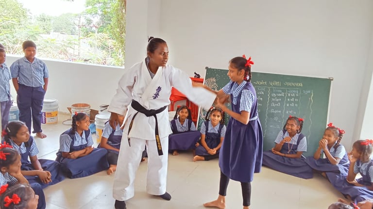 Dakshaben Rathod, an practice 15-years female coach who has served as many as 12 schools, taught students karate, self-defense by giving training by herself in some schools.