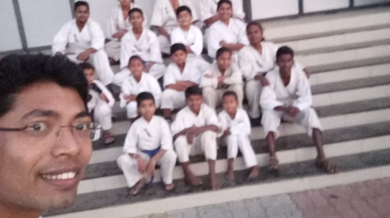 Hirenbhai Rana, an practice 10 - years male coach who has served as many as 12 schools, taught students karate, self-defense by giving training by himself in some schools.