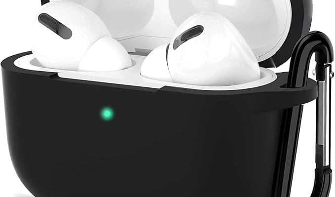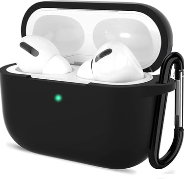 Sounce Earphone Case Case Cover - Carabiner Included, Shock Resistant, Compatible with AirPods Pro, Supports Wireless Charging, Full Protection [Front LED Visible] (Black)