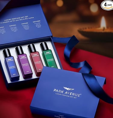 Park Avenue Luxury Perfume Gift Set for Men, 4x20 ml | Long lasting Fragrance | Eau De Parfum | Premium Luxury Perfume for Corporate Man |Gift for Men | Euphoria, Conquer, Harmony & Discoverer Perfume | Diwali Gift Hampers | Ideal Birthday, Anniversary Gift Set for men